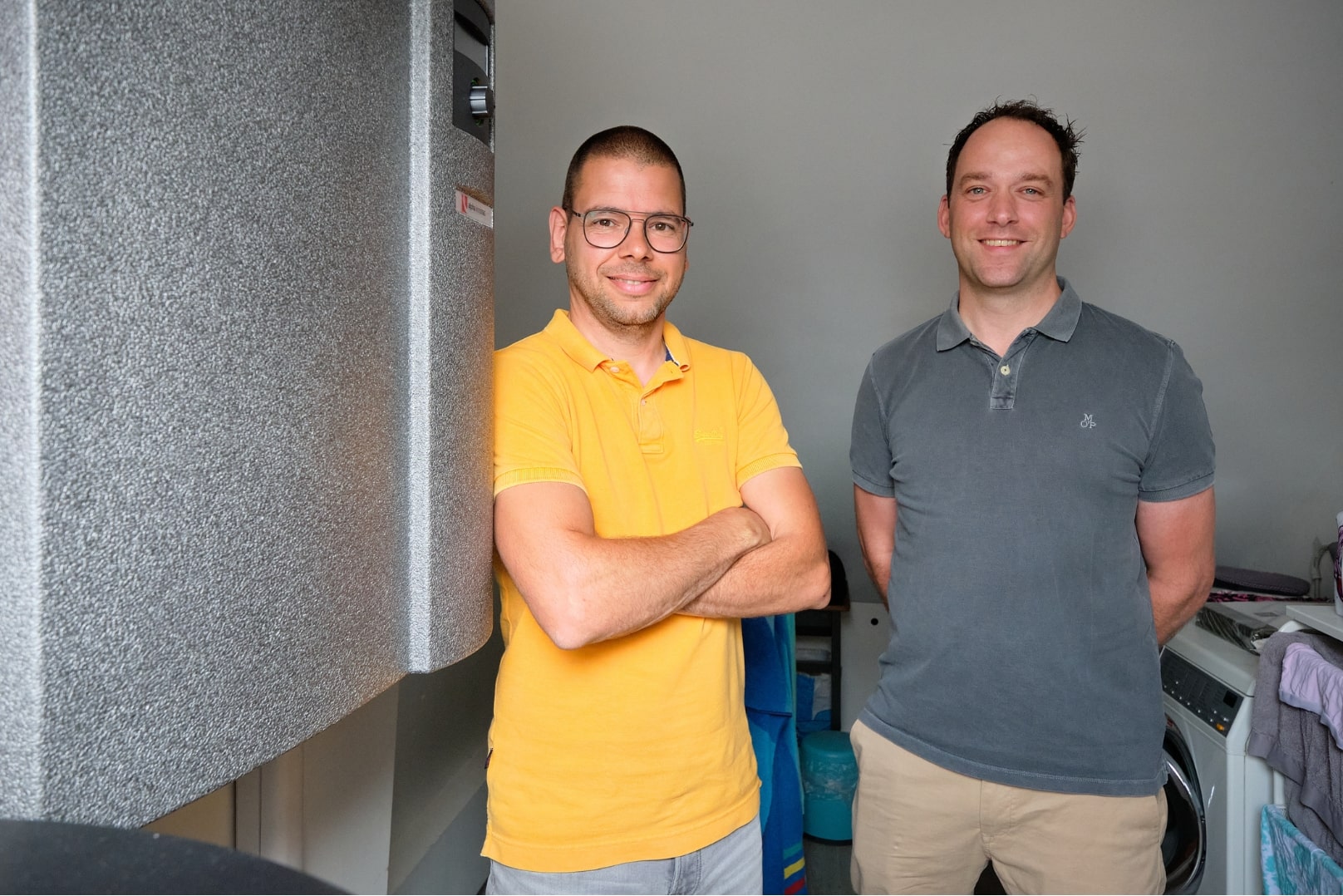 met een “grote vriezer”? We hebben heel ouderwets met stickers op de vloer de omtrek van de warmtepomp afgeplakt. In de showroom staat alles natuurlijk binnen opgesteld. Jeffry en zijn vrouw zijn daarom ook echt bij mensen in de