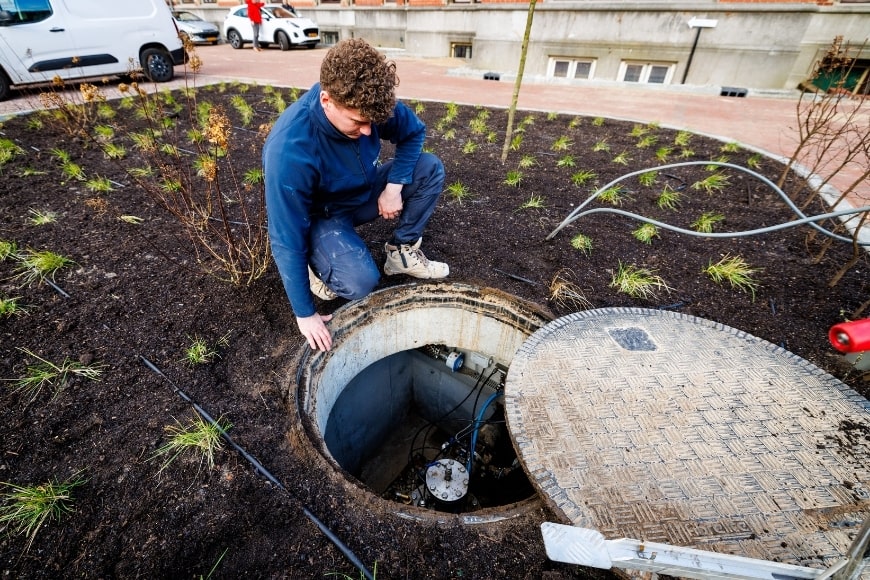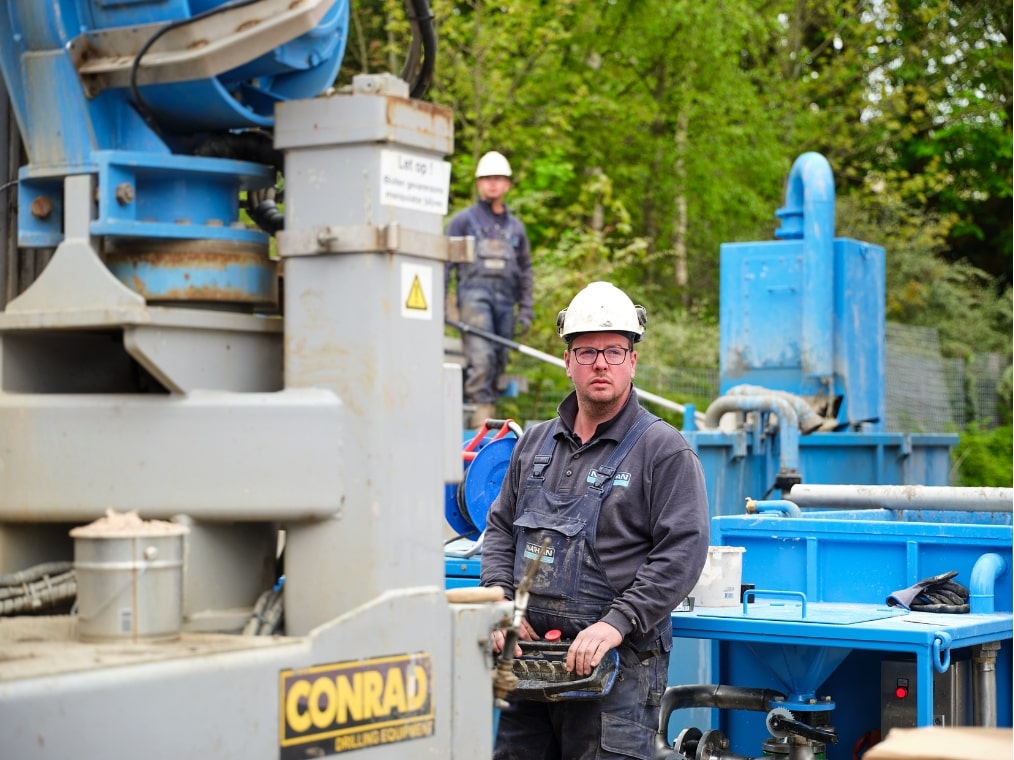 Danny Wisselo is Senior Sales Advisor en namens Nathan betrokken bij dit uitdagende project. ‘TenBrinke Investments schakelde ons in voor de aanleg van een duurzame installatie. Het Canisiushof moest van het gas af. Dat was een eis van de Gemeente Nijmegen en de verhuurder wilde dit ook graag, omdat het een gunstig effect heeft op de verhuurprijs. Wij dachten dat het complex geschikt zou zijn voor een WKO-installatie. Omdat je hiermee voldoende vermogen kunt leveren om een monumentaal pand op een duurzame manier te verwarmen en koelen. DKC is de partij met verstand van hoe deze in te richten en aan te sluiten. Voor dit soort complexe opdrachten moet je een installateur hebben met veel specifieke kennis, want het is niet te vergelijken met het werk in nieuwbouw.’ Monteur Nick Wagener loopt namens DKC inmiddels 2,5 jaar rond in dit project. ‘Het dak en de tussenvloeren zijn geïsoleerd, maar de spouwmuren niet. Originele dorpels en kozijnen moesten blijven. Er is wel nieuw glas in geplaatst, maar het pand blijft op veel plekken niet 100% tochtvrij.’ Danny: ‘Dankzij de twee duurzame bodembronnen kan het gebouw nu toch met lagetemperatuurverwarming verwarmd worden.’ En de oplossing van Nathan en DKC haalt een zeer hoog rendement. Het boren van de bronnen was ook een uitdaging. Danny: ‘Ze moesten op een bepaalde afstand van elkaar komen, het pand zit aan een doorgaande weg en op een aantal plekken zit munitie in de grond uit de Tweede Wereldoorlog dus daar mochten we niet boren. We moesten ook relatief diep boren. Dat kost veel tijd en daarvoor moesten we het een en ander afstemmen met de gemeente. Uiteindelijk is alles goed verlopen.’
