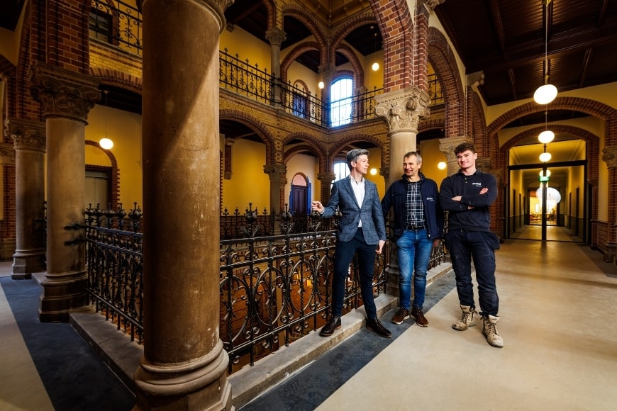 Een rijksmonument duurzaam verwarmen en koelen onmogelijk? Zeker niet. ‘Maar een lastige klus was het wel’, legt Teamleider Engineering bij DKC Totaaltechniek, Bard Duin uit. ‘Het Canisiushof is een rijksmonument en daarom mag niet alles optimaal geïsoleerd worden terwijl de opdrachtgever er wel lagetemperatuurverwarming in wilde.’ De nieuwe bewoners en zakelijke gebruikers van het Canisiushof in Nijmegen lijden nu (winter 2024-25) geen kou. En straks in de zomer genieten ze van een comfortabele binnentemperatuur, ook in de kapel en prachtige, zeer hoge bibliotheek. Nathan Projects en DKC Totaaltechniek ontwierpen, bouwden en installeerden een duurzame wko- installatie met twee bodem-bronnen en vijf warmtepompen. Het Canisiushof is de nieuwe naam van het Canisius College, een voormalige onderwijsinstelling met klooster van de Jezuïten aan de Berg en Dalseweg in Nijmegen. Deze oudbouw wordt gerenoveerd en getransformeerd en er is een nieuw deel aangebouwd. De totale oppervlakte is ruim 3000 m2.
